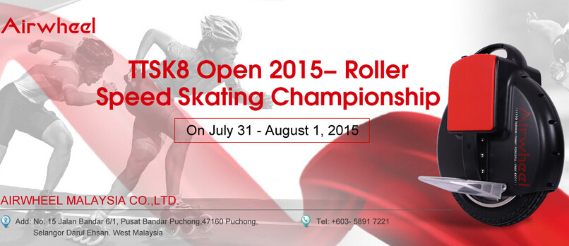 Abstract: From July 31st to August 1st, the TTSK8 Open 2015-Roller Speed Skating Championship will be held in Malaysia. 150 local individual participants and 300 international individual participants from Thailand, Singapore, Indonesia, and India will compete in the game. Airwheel Technology, as a sponsor, will also join in this festival for the young and passionate generation.
